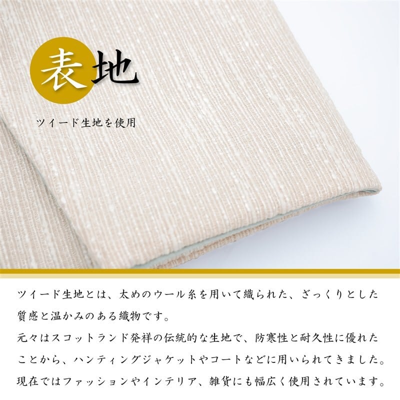 表紙素材:ポリエステル63%・綿20%・レーヨン17%(ツイード生地)
