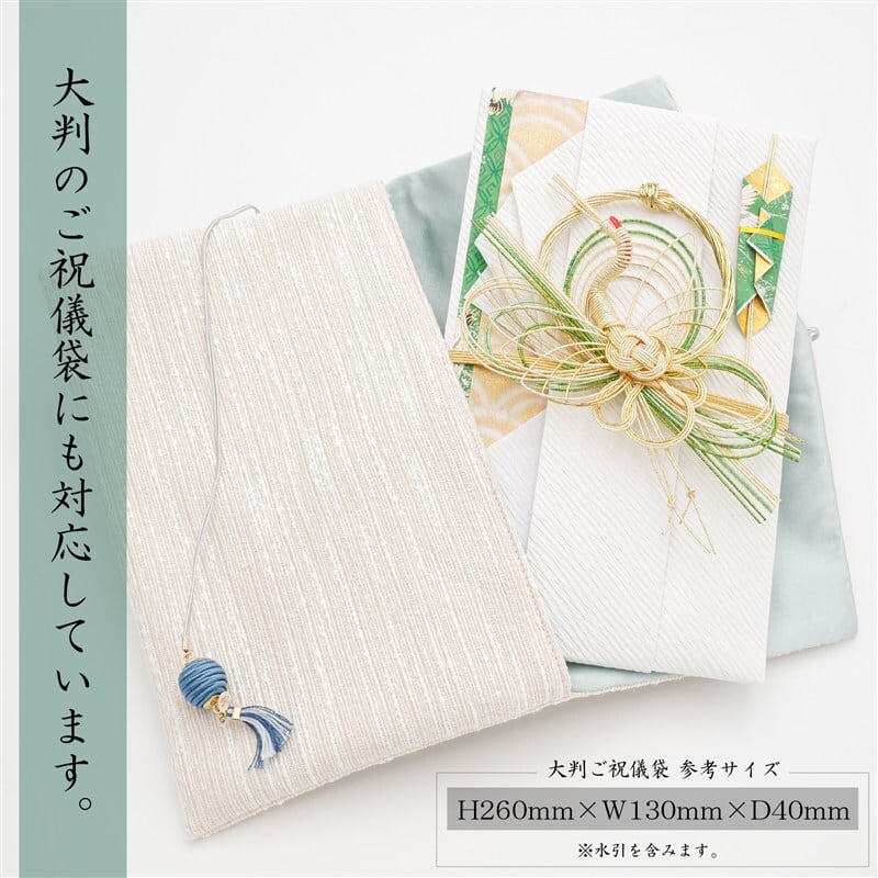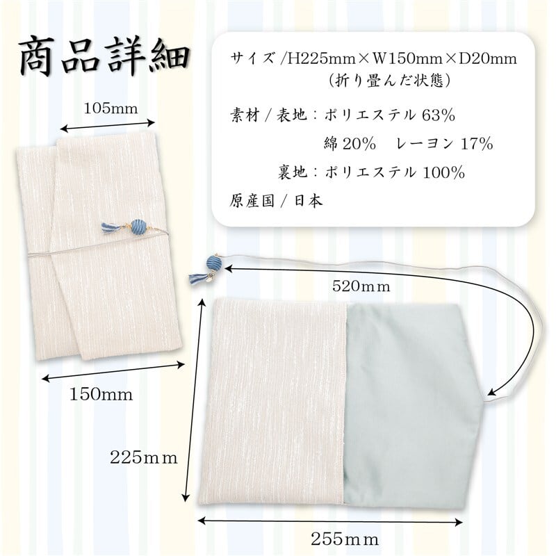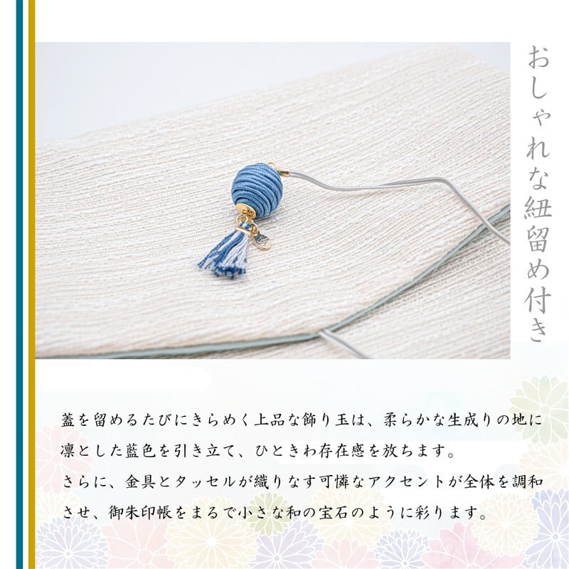 京都産のツイード生地を使用し、ふくさメーカーが製造した上質な御朱印帳入れです。シンプルながらも高級感があり、和装にも洋装にも自然に馴染むデザインに仕立てられています。表地にはざっくりとした質感と温かみが魅力のツイード生地、裏地には上品な光沢を放つポリエステルサテンを採用。慶事の席で使用する袱紗としても使用できる確かな品質で仕上げています。ふたを留める飾り玉とタッセルがアクセントとなり、華やかさと上品さを演出。標準サイズ(約12×18×1.3cm)の御朱印帳が2冊まで収納可能で、透明カバー付き御朱印帳にも対応しています。御朱印巡りのお供にはもちろん、パスポートや通帳、お薬手帳などを入れるポーチとしても活躍。参拝デビューの方や大切な方への贈り物にも最適な、日本製の逸品です。