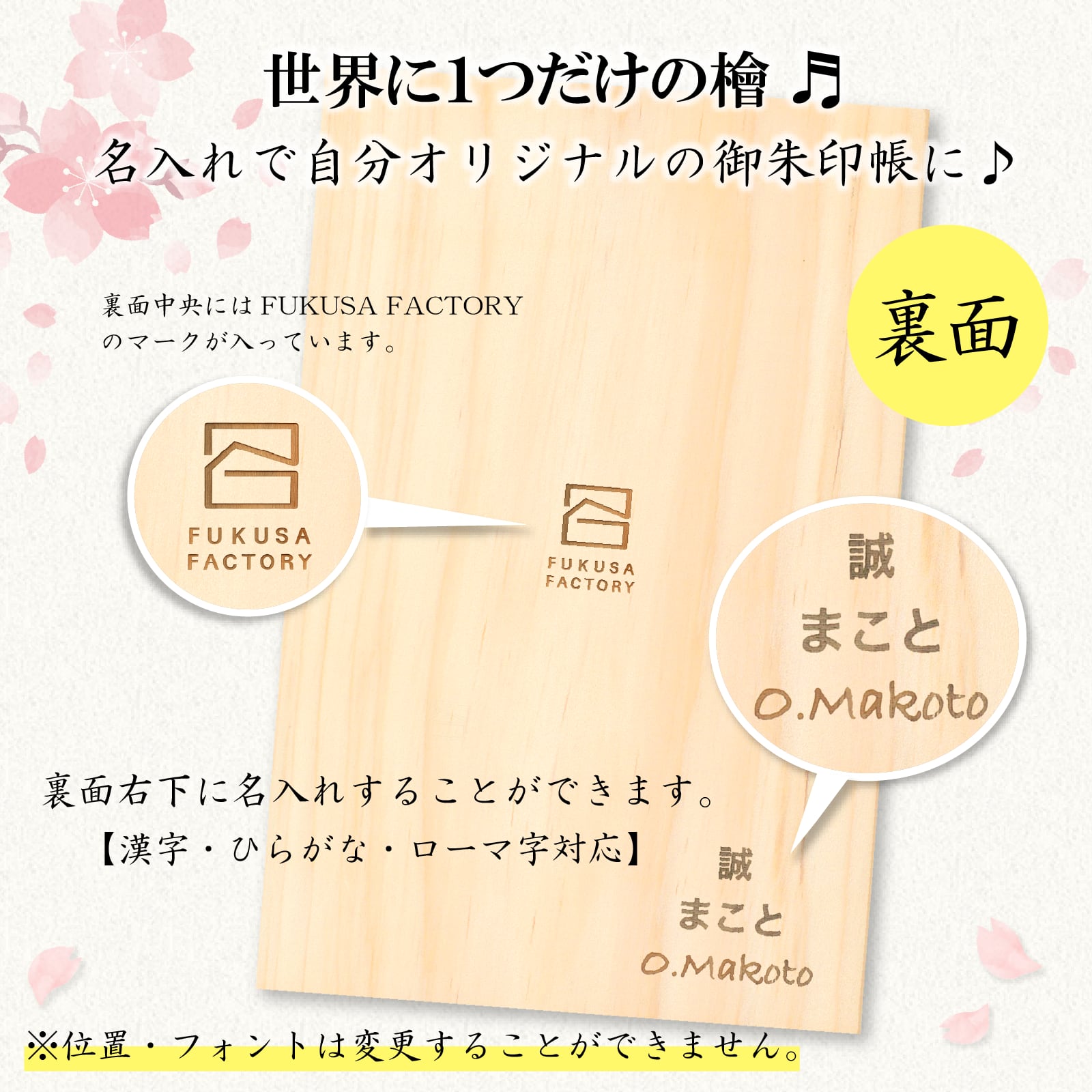 京都の伝統と天然木の温もりが調和した、世界にひとつだけのオリジナル御朱印帳です。表紙には、三重県・伊勢地方で育まれた高品質な檜(ひのき)を使用しており、寒暖差と安定した湿度により育つ細やかな年輪が、美しい木目と高い耐久性を生み出します。中紙には破れにくく裏写りしにくい奉書紙(白)を採用し、二重構造と蛇腹式の仕様によって、開いたページが戻りにくく、御朱印が書きやすい構造になっています。サイズは約H18.2cm×W12.5cm×D2.0cmで、手にしっくりと収まる標準的な御朱印帳サイズです。裏面右下には、お名前(漢字・ひらがな・ローマ字)を名入れすることができ、自分だけの特別な一冊としてはもちろん、参拝デビューの方や大切な方への贈り物にも最適です(※フォント・位置の変更は不可)。御朱印とは、神社やお寺を参拝した証として授かるもので、ひとつひとつがその場でしか得られない貴重な一点物。旅の記録として、また神聖な記念として大切に扱われています。デザインは、鶴、シマエナガ、風神雷神、七福神、北海道の熊、沖縄のシーサーなど、縁起の良いモチーフをオリジナルのレーザー加工で表現。使いやすさと美しさを兼ね備えた、日本製の上質な御朱印帳です。