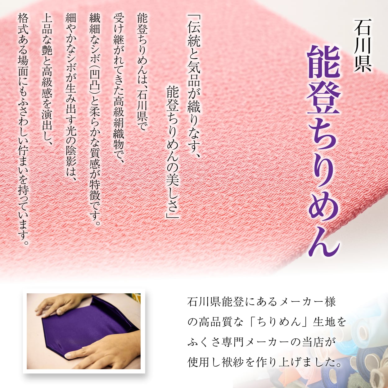 ふわふわとした姿が愛らしいシマエナガの刺繍が施された、華やかで上品な慶事用ふくさです。生地には、石川県の織物 「能登ちりめん」 を使用し、繊細なシボと滑らかな質感が高級感を演出。格式あるお祝いの場にふさわしい、洗練された風合いが魅力です。シマエナガは「幸せを呼ぶ鳥」「福を運ぶ鳥」として古くから親しまれ、円満や繁栄の象徴とされています。その愛らしい姿を丁寧な刺繍で表現し、持つ人に幸福をもたらすよう願いを込めました。結婚式やお宮参り、七五三、長寿祝いなど、大切な節目を彩るのにふさわしい一枚です。また、能登ちりめんならではの美しい色彩と上品な手触りは、使い込むほどに味わいが増し、ご家族で受け継ぐこともできます。祝いの気持ちを込めた贈り物としても最適な逸品。人生の特別な瞬間に、幸福と温もりを運ぶふくさをぜひお手元に。