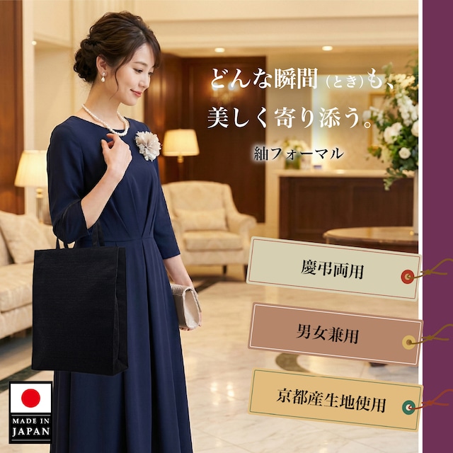 「京都産生地を贅沢に使用。手提げ×ショルダーの2WAY仕様フォーマルバッグ」