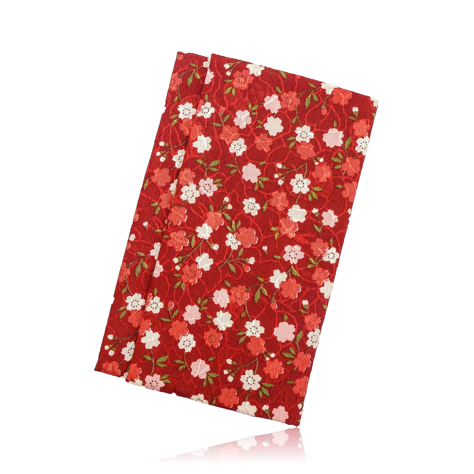 華やかな花柄のちりめんジャガード生地と、上品な風合いの紬生地をリバーシブルで仕立てた、日本製の金封袱紗(ふくさ)です。慶事には明るく華やかな柄面を、弔事には落ち着いた無地面を使い分けられる、実用性と美しさを兼ね備えた一枚。中の台紙もリバーシブル仕様で、当店独自の技術により実用新案としても登録済み。ポケットをひっくり返すだけで簡単に切り替えができ、急なお呼ばれやフォーマルシーンにも安心して対応できます。京都の工房で丁寧に縫製された品格ある仕上がりは、贈り物やご自身用としてもおすすめ。一般的なご祝儀袋がしっかり収まるサイズで、結婚式・法事・お祝い・お悔やみなど、冠婚葬祭のあらゆる場面に幅広く対応します。えんじ×紺、紫×緑の2色展開。日本の伝統と実用性を融合させた、当店ならではの逸品です。