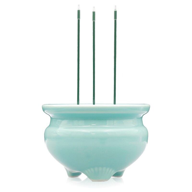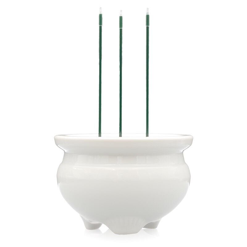 日本製 LED線香 2.5寸3本立陶器香炉 陶器香炉付き