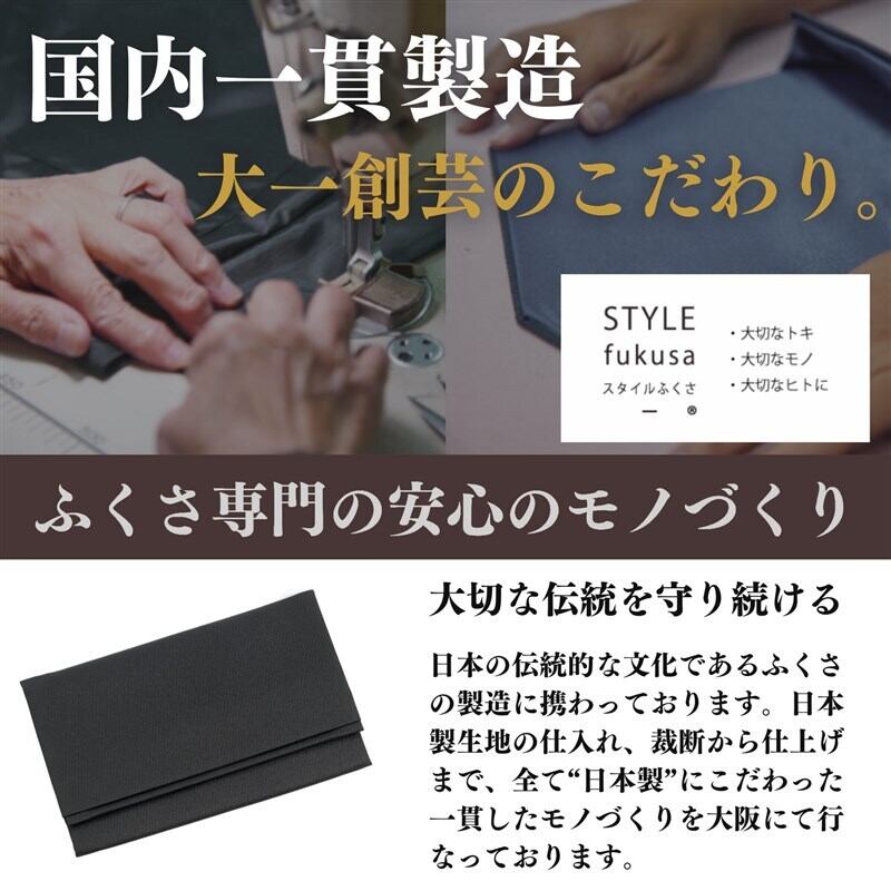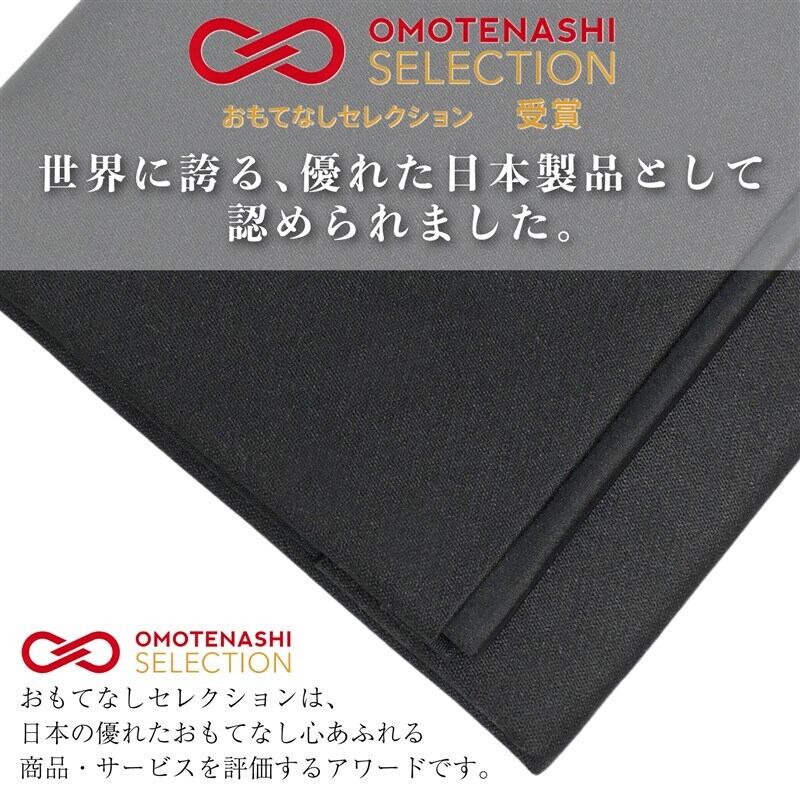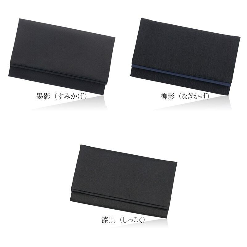 日本の伝統文化を受け継ぐふくさ専門メーカーが大阪の自社工房で丁寧に仕立てた「フォーマルブラックふくさ」は、深みのある漆黒と上品な光沢を併せ持つ高品質なサテン生地を使用し、哀悼の場にふさわしい気品と落ち着きを備えています。右手に持ち左手で開く「左開き」仕様は、お悔やみやご葬儀などの弔事における正式な作法に沿っており、心を込めて故人に敬意を表すための丁寧な所作をサポートします。標準的な不祝儀袋(10cm×18cm)に対応した軽量でコンパクトな設計は、バッグやポケットにも収まりやすく持ち運びにも便利です。また、「OMOTENASHI SELECTION(おもてなしセレクション)」を受賞し、世界に誇る日本製品としても高く評価されています。シンプルな漆黒(しっこく)、控えめなリブの墨影(すみかげ)、織柄とネイビーのラインが映える柳影(なぎかげ)の3種をご用意し、それぞれが深い哀悼の気持ちを静かに、そして品位をもって包み込む一品です。